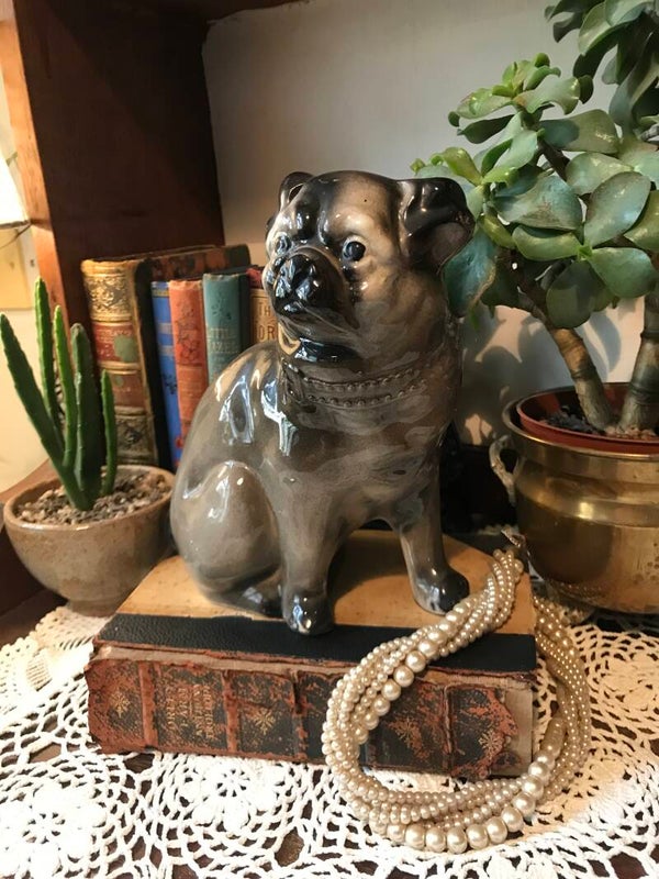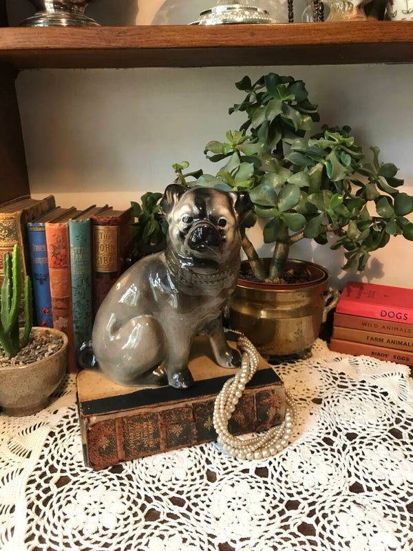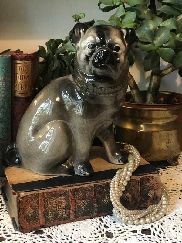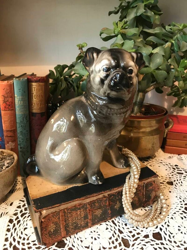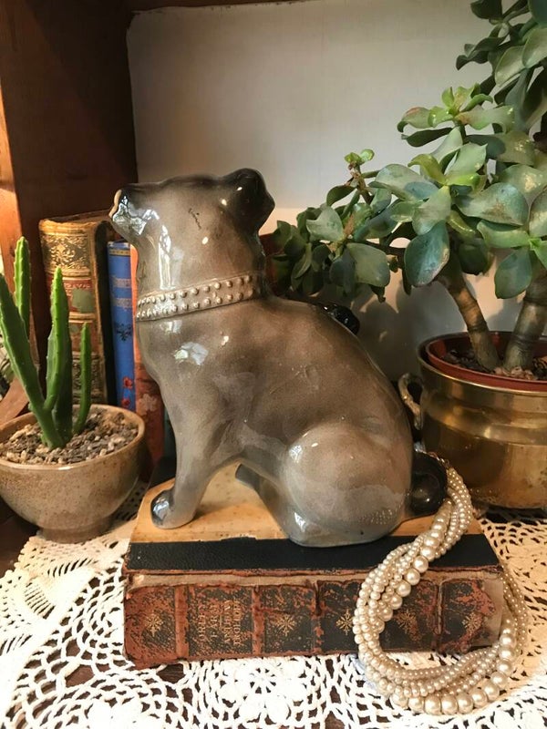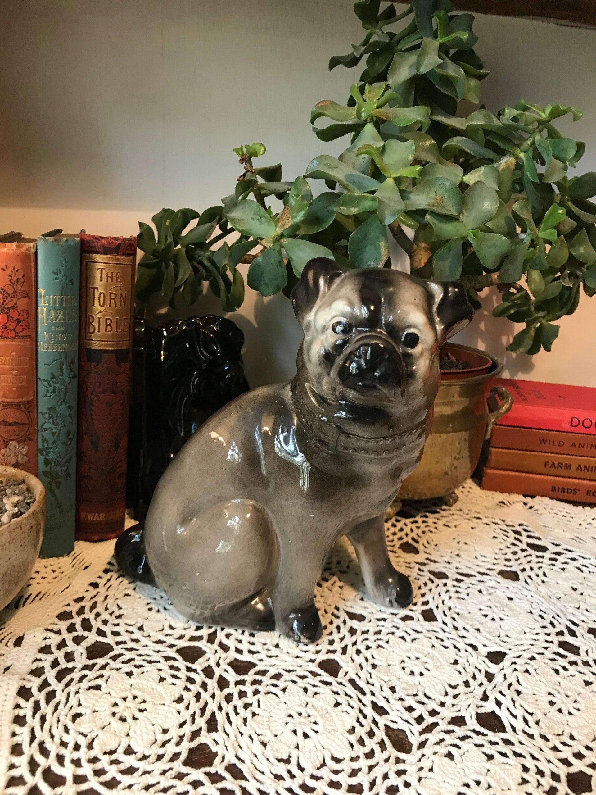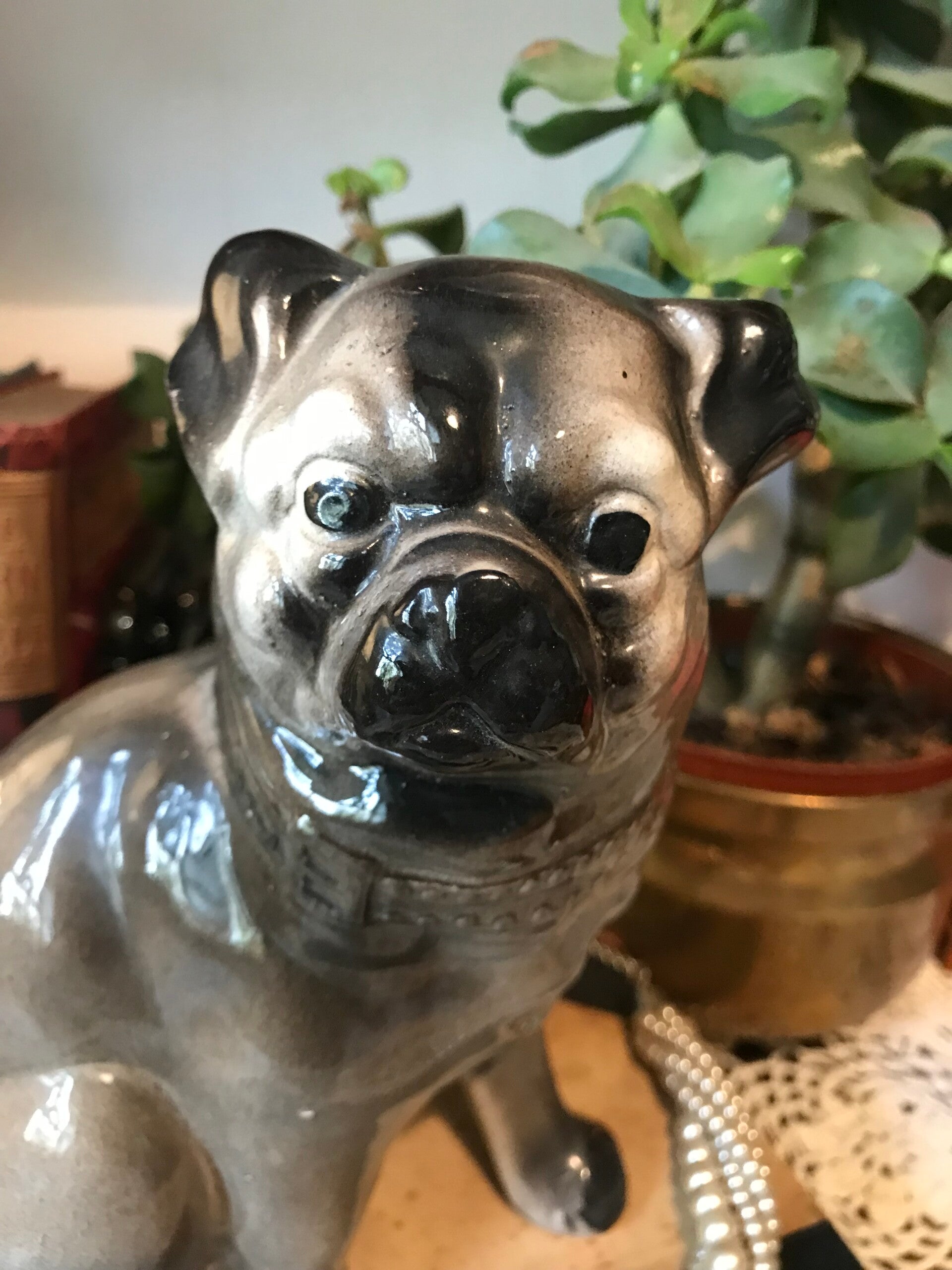 Antique Staffordshire Style Fireside Pug Wally Dog