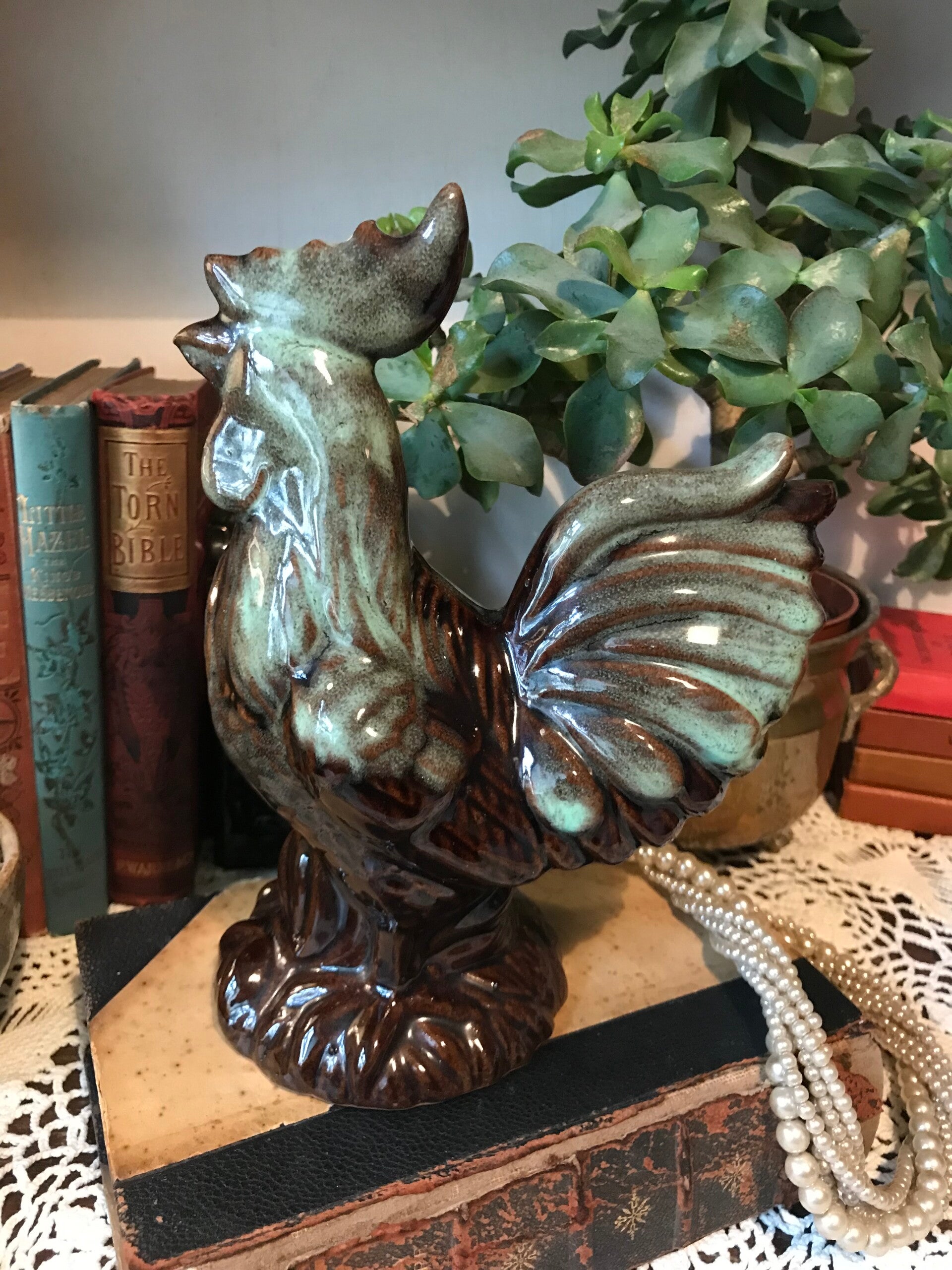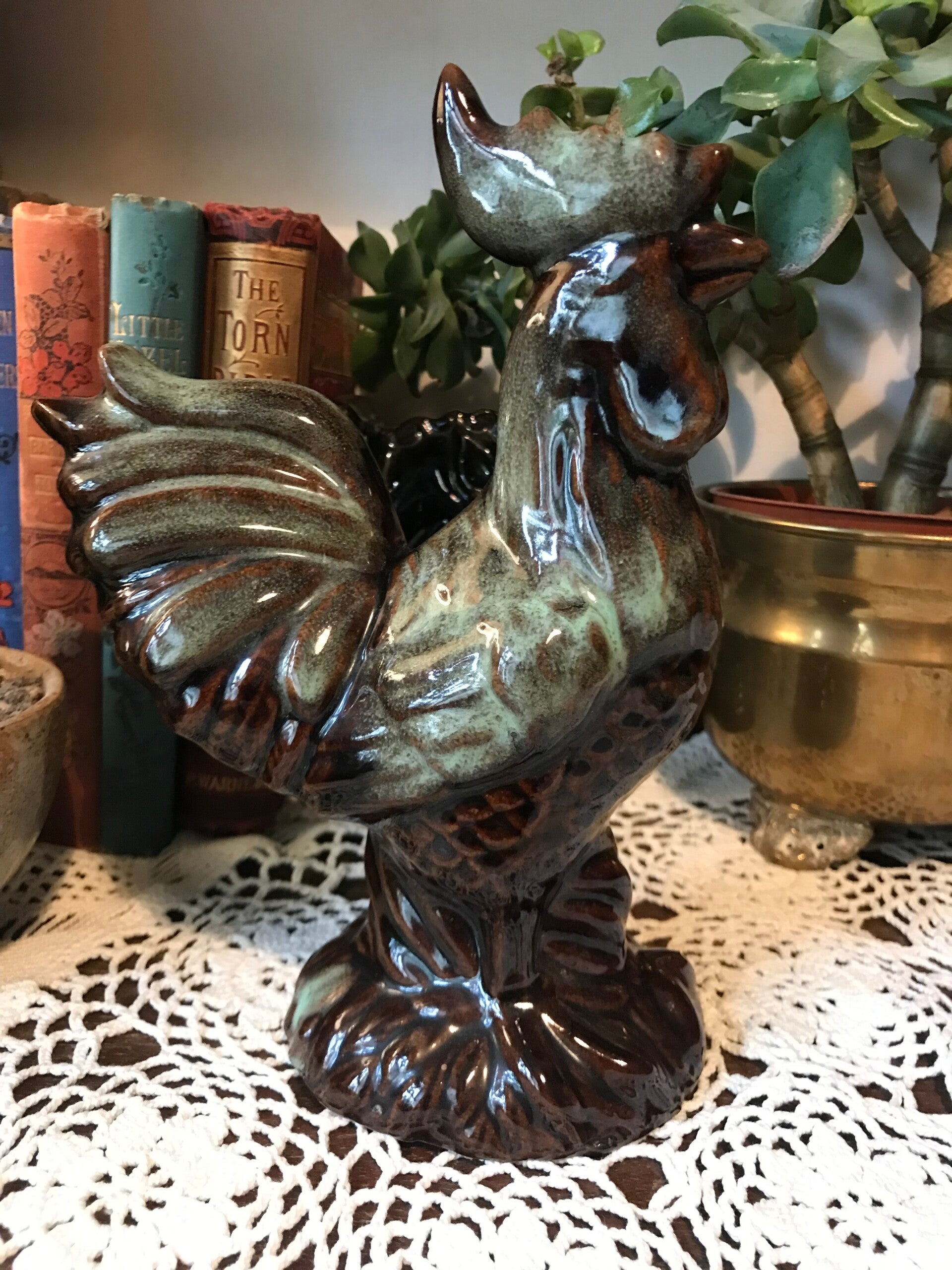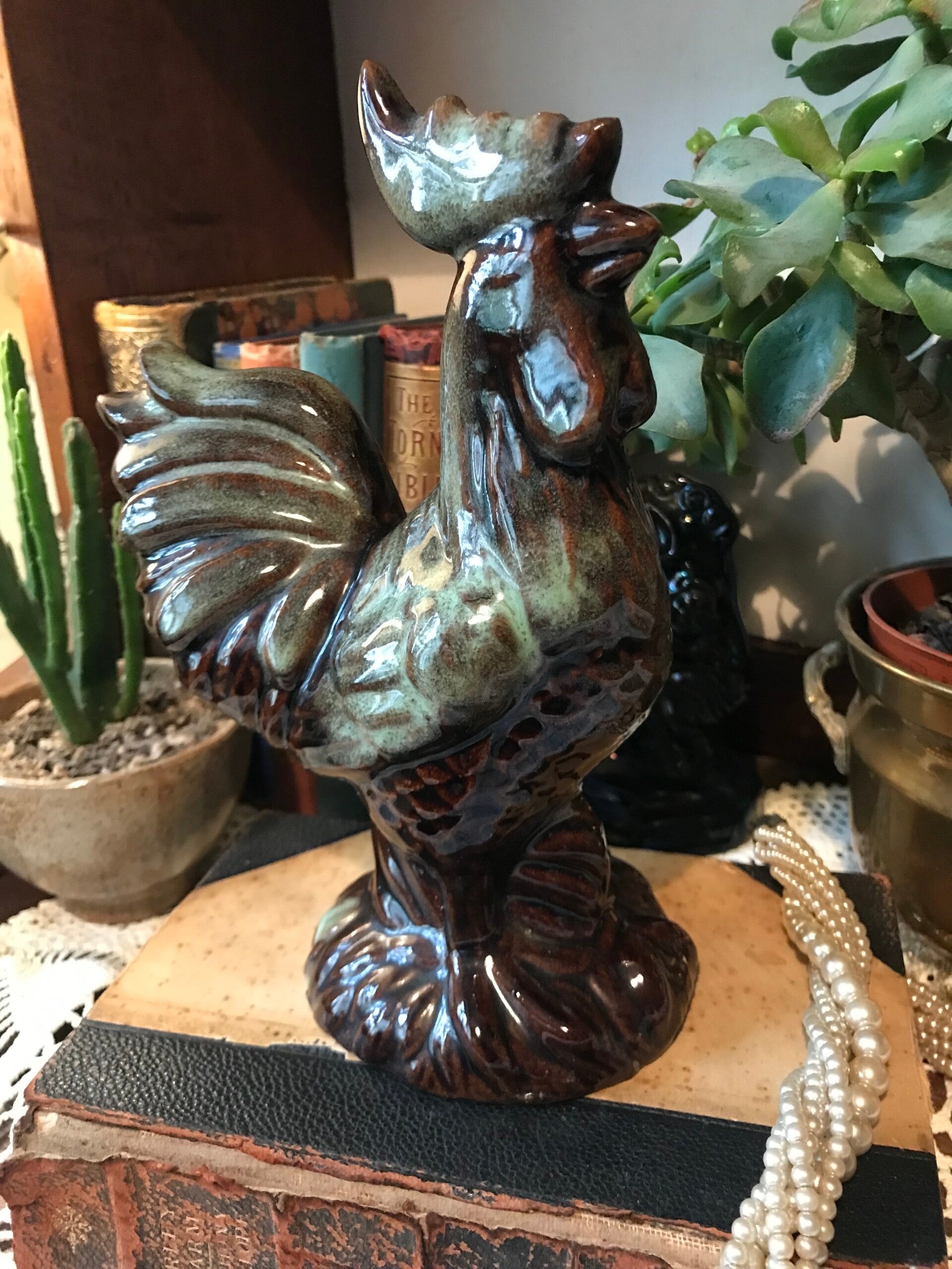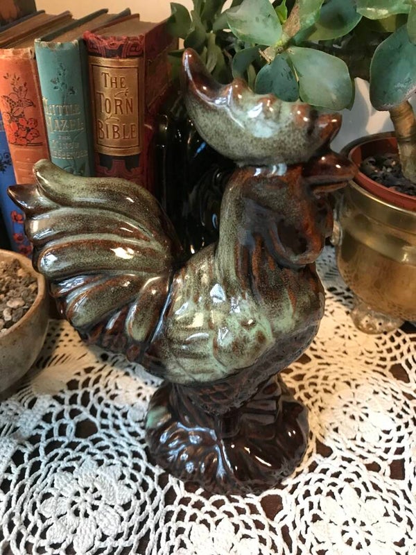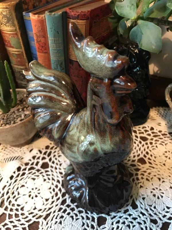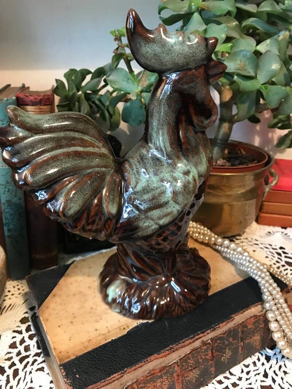 A handsome rooster figurine, a must have for any chicken collector! Approx size 8”h x 6”w x 4”d overall in very good condition.