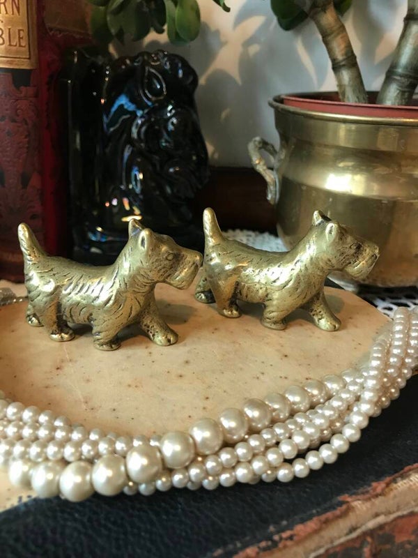 Pair Of Vintage Solid Brass Scotti Dog, West Highland Terrier
