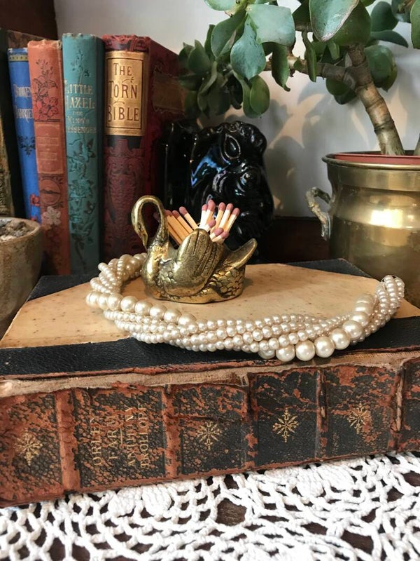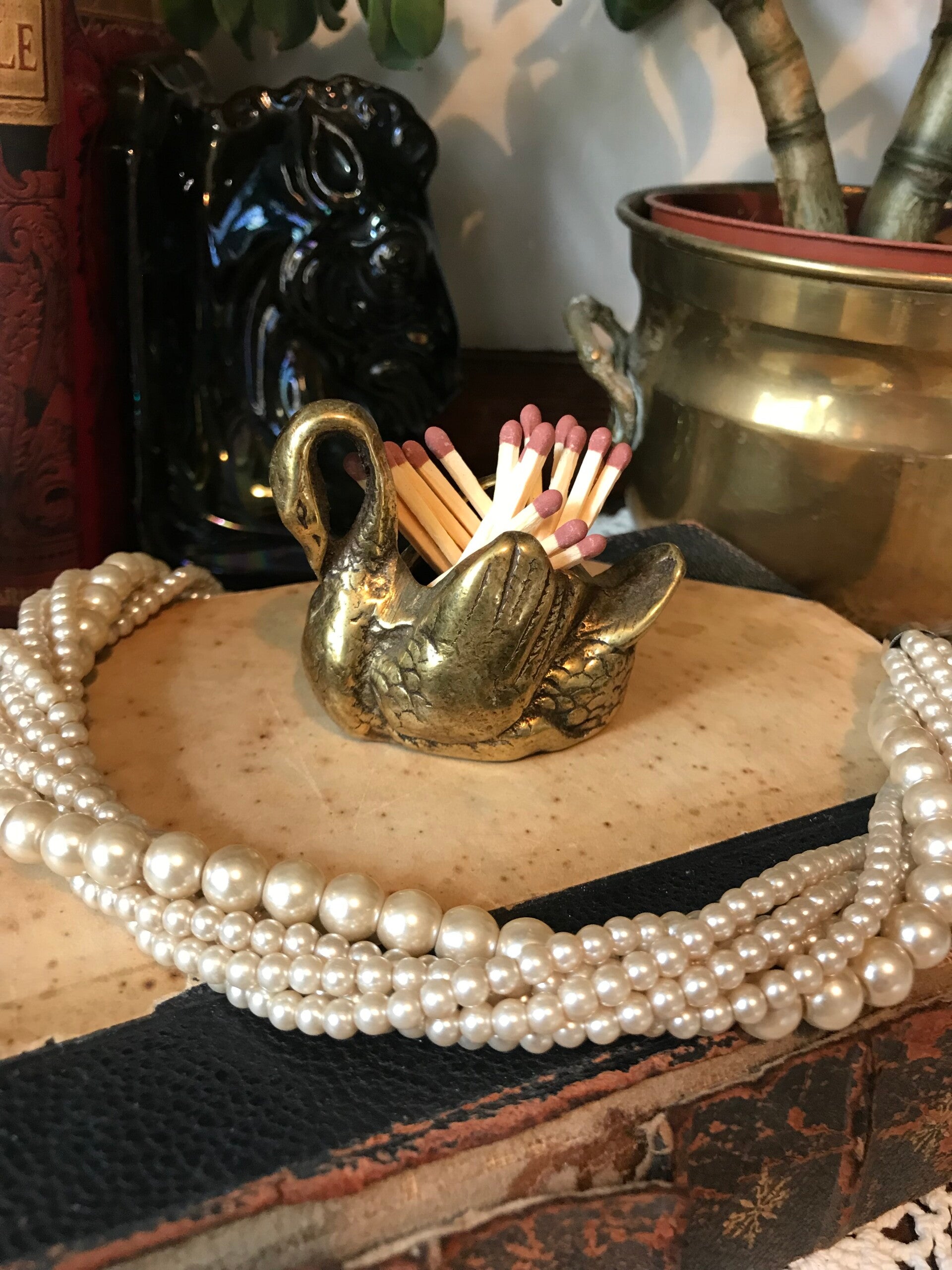 Vintage little brass swan, perfect as a matchstick holder, cocktail stick holder or even a little candlestick. Approx size 2"x2.5"
