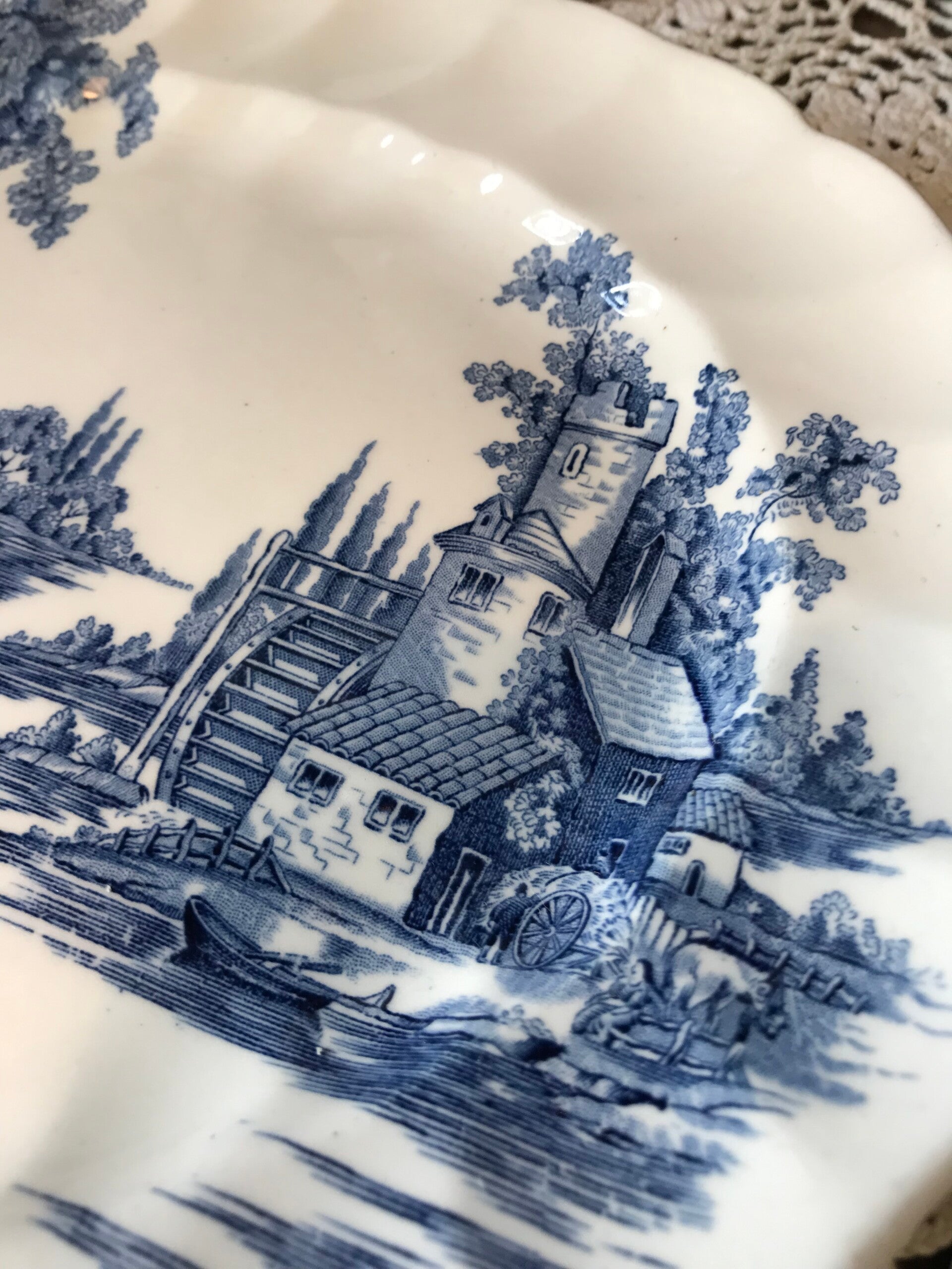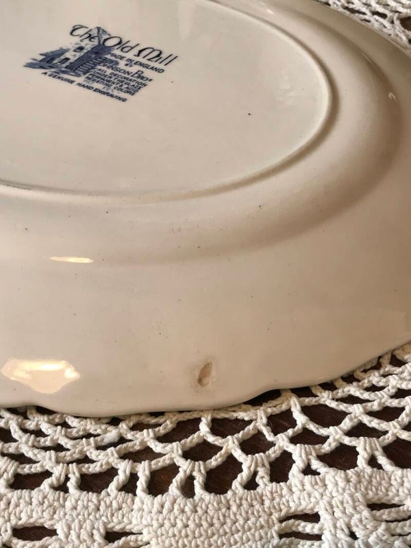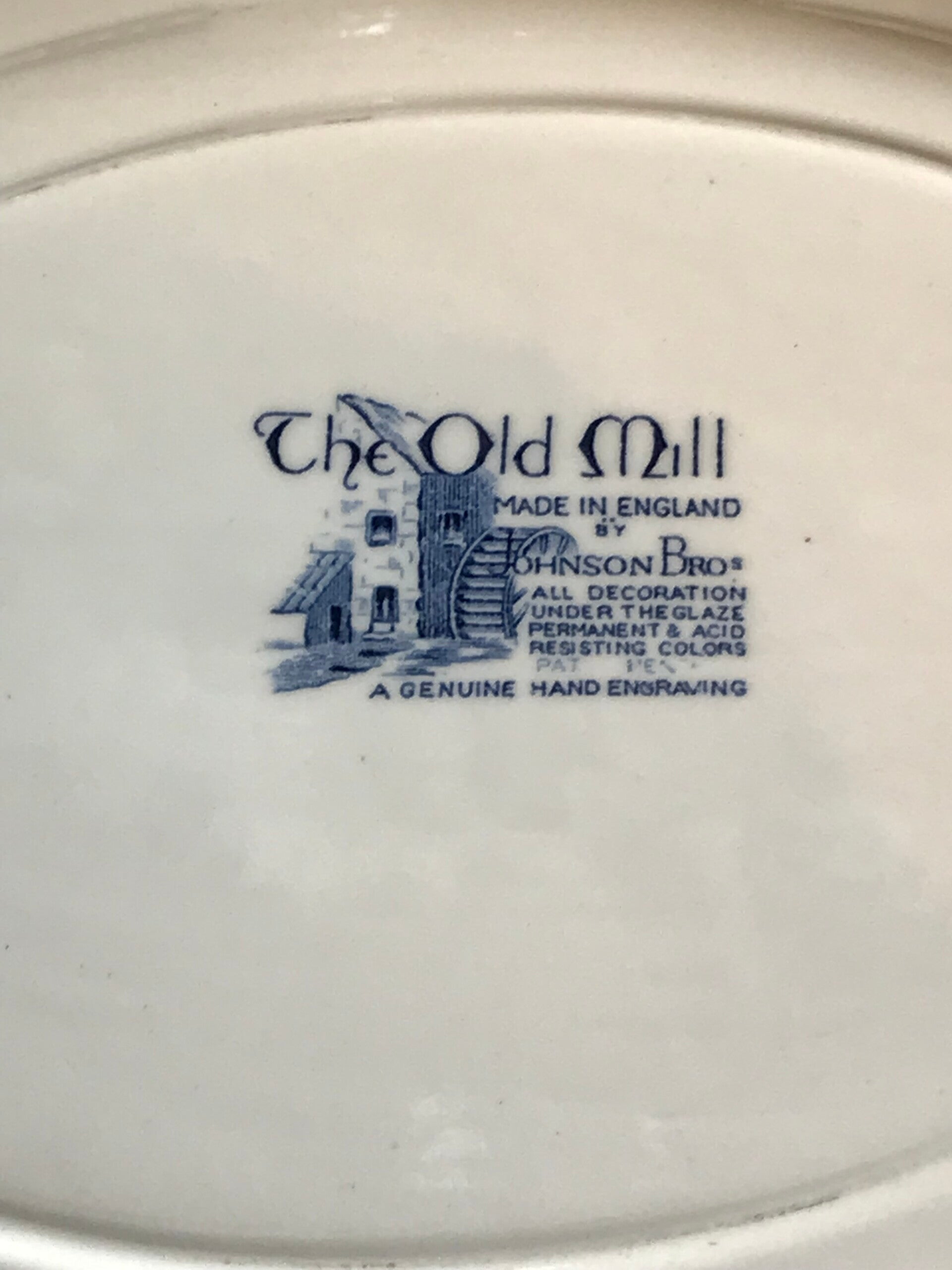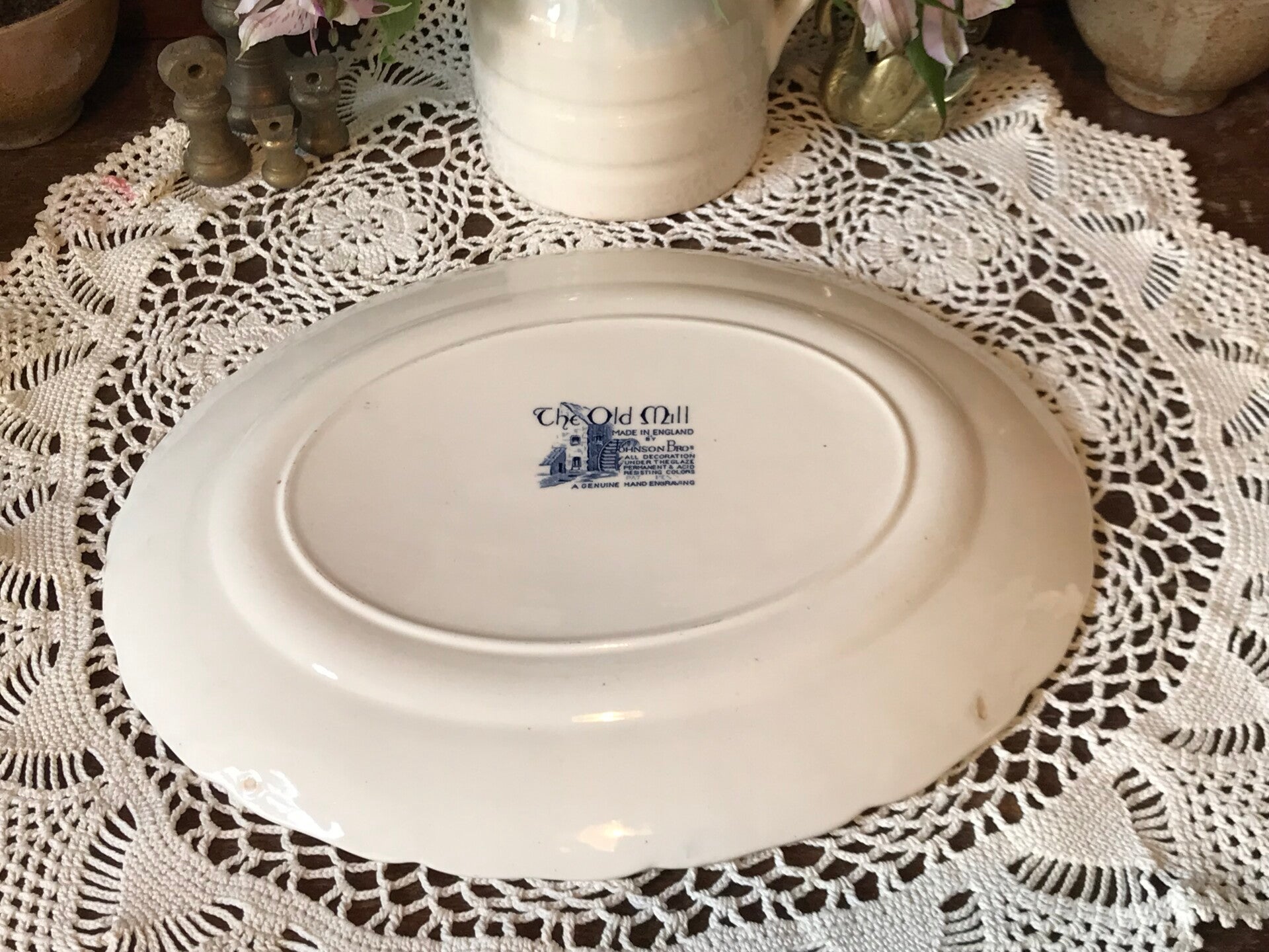 Pretty oval serving plate, by Johnson's bros, The Old Mill design. Excellent condition, approx size 12"x10"
