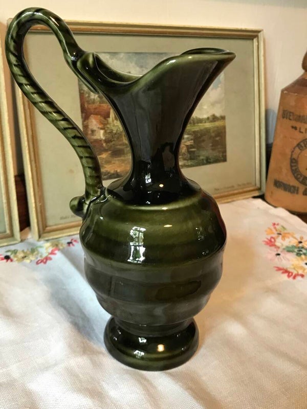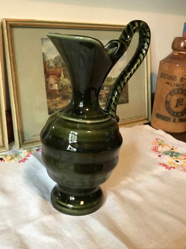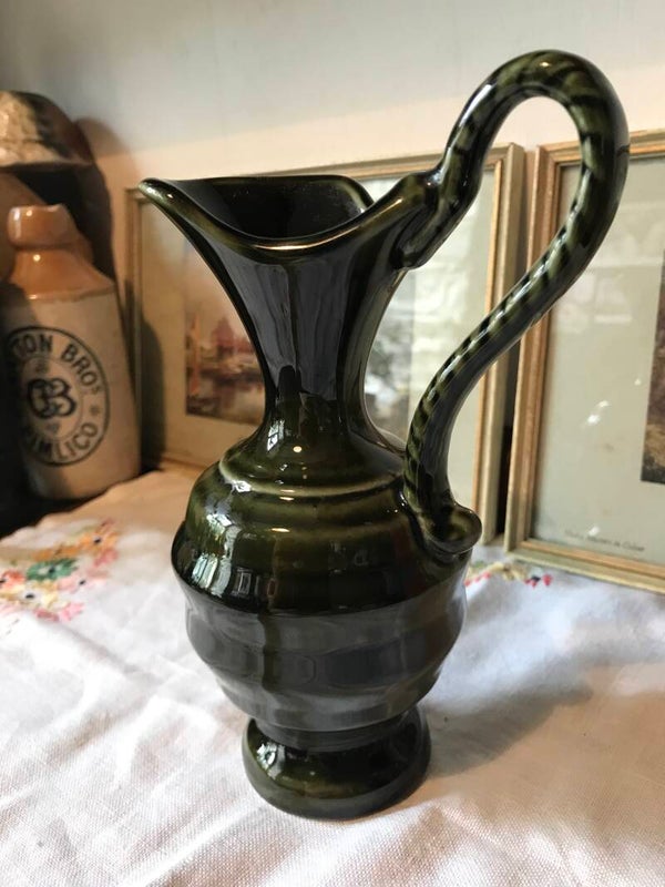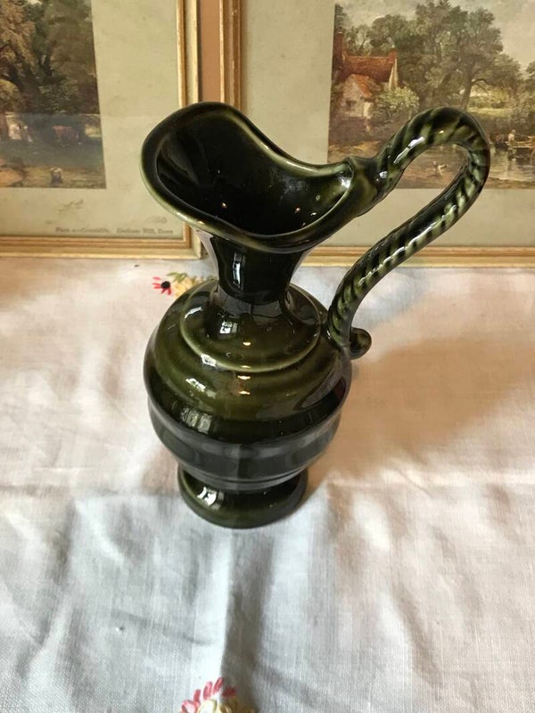 Stunning Green Vintage Jug Vase with Twisted Handle